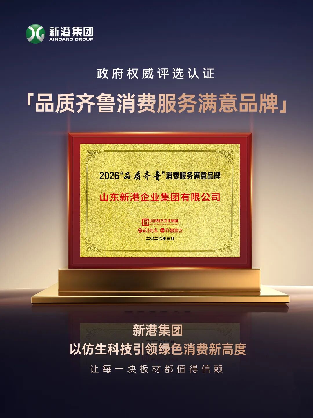 此次荣获“品质齐鲁消费服务满意品牌”,既是认可,更是责任。未来,新港集团将继续以科技创新为引擎,以绿色发展为方向,在政府引导与行业协同下,持续提升产品与服务品质,引领中国木业迈向绿色化、智能化、国际化发展新阶段,让“新港仿生精板”成为全球信赖的品质标杆,为全国消费品质升级注入更强动能。