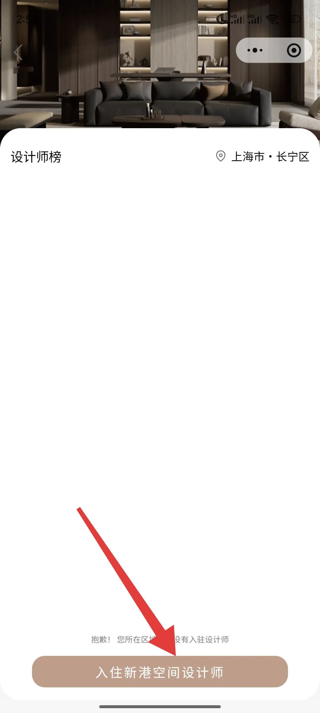 搜索或扫描上方二维码进入新港空间小程序,点击首页“设计师”板块,点击下方“入住新港空间设计师”填写认证信息并提交审核。