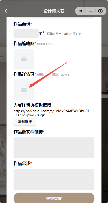 上传作品前,需按照指定模板和格式制作作品详情页及作品源文件链接。